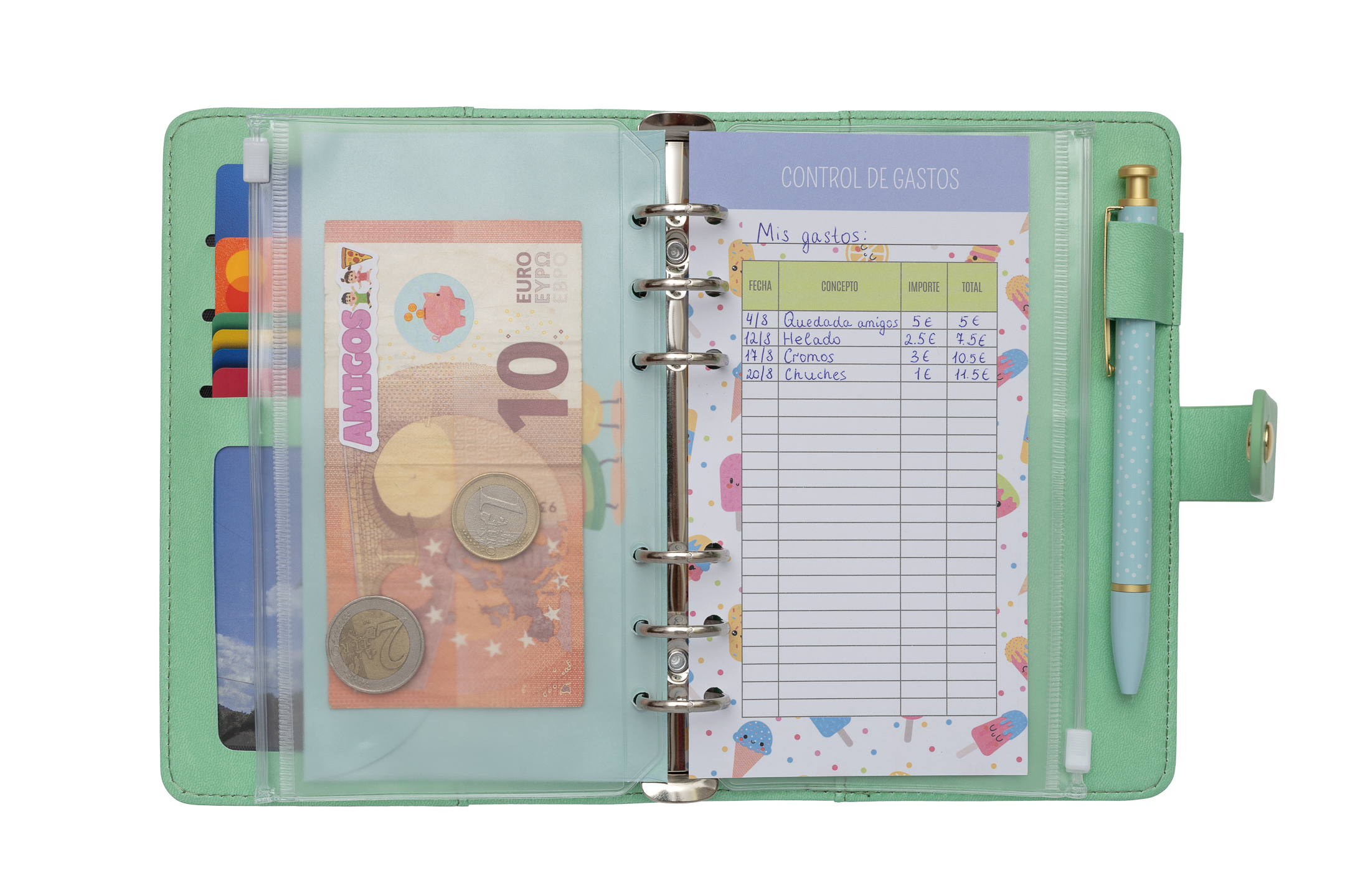 Para ello, el organizador incluye hojas de control, donde se anotan todos los gastos. Registrar lo que se gasta es una parte fundamental del método, ya que permite saber en todo momento cuánto dinero queda disponible.